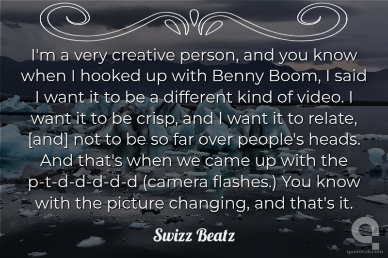 I'm a very creative person, and you know when I hooked up with Benny Boom, I said I want it to be a different kind of video. I want it to be crisp, and I want it to relate, [and] not to be so far over people's heads. And that's when we came up with the p-t-d-d-d-d-d (camera flashes.) You know with the picture changing, and that's it.