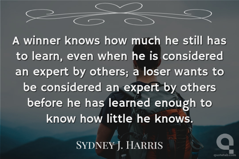 A winner knows how much he still has to learn, even when he is considered an expert by others; a loser wants to be considered an expert by others before he has learned enough to know how little he knows.