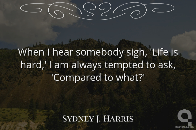 When I hear somebody sigh, 'Life is hard,' I am always tempted to ask, 'Compared to what?'