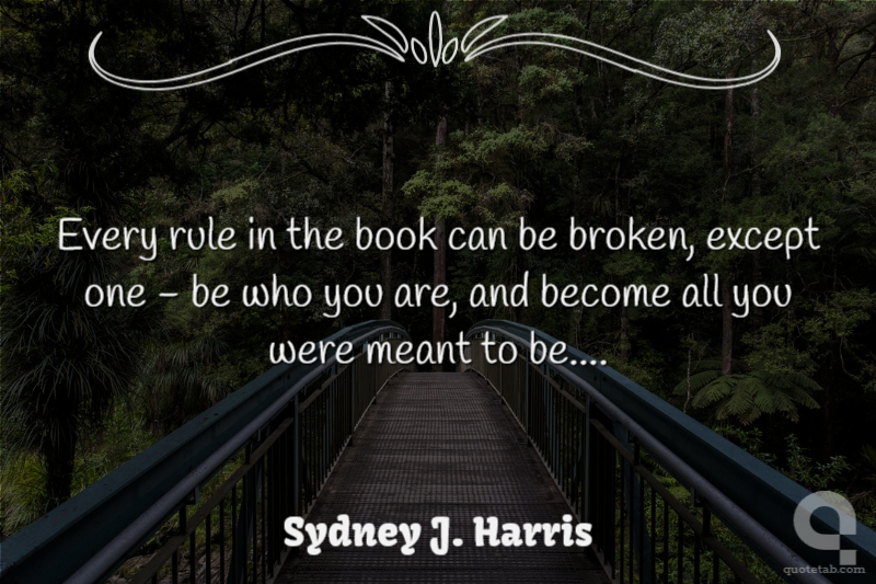 Every rule in the book can be broken, except one - be who you are, and become all you were meant to be....