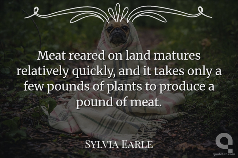 Meat reared on land matures relatively quickly, and it takes only a few pounds of plants to produce a pound of meat.