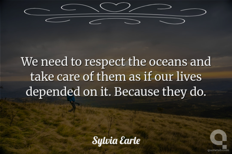 We need to respect the oceans and take care of them as if our lives depended on it. Because they do.