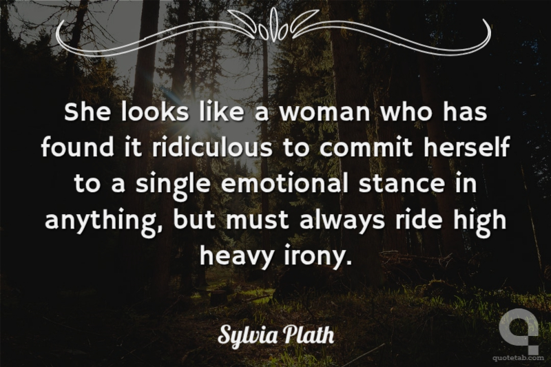 She looks like a woman who has found it ridiculous to commit herself to a single emotional stance in anything, but must always ride high heavy irony.