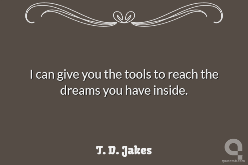 Thomas Dexter "T. D." Jakes, Sr.is an American pastor, author and filmmaker. He is the bishop of The Potter's House, a non-denominational American megachurch, with 30,000 members. T. D. Jakes' church services and evangelistic sermons are broadcast on The Potter's Touch, which airs on Lightsource.com, the Trinity Broadcasting Network, Black Entertainment Television, the Daystar Television Network, The Word Network, VHS home video, and The Miracle Channel in Canada. Other aspects of Jakes' ministry include an annual revival called "MegaFest" that...