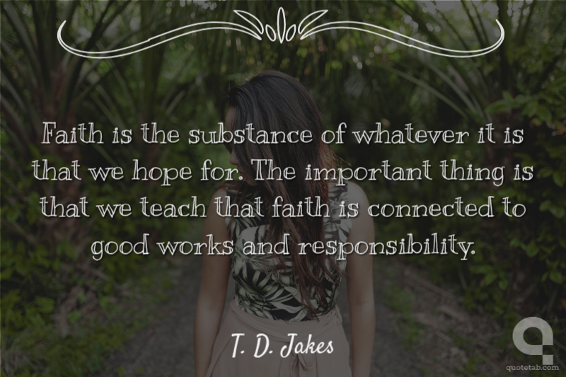 Faith is the substance of whatever it is that we hope for. The important thing is that we teach that faith is connected to good works and responsibility.