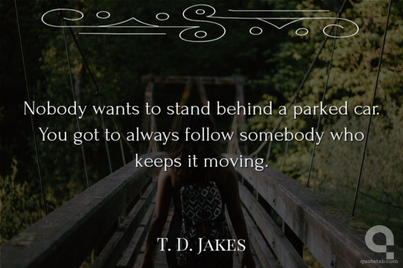 Nobody wants to stand behind a parked car. You got to always follow somebody who keeps it moving.