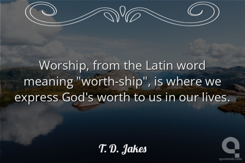 Worship, from the Latin word meaning "worth-ship", is where we express God's worth to us in our lives.