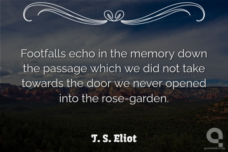 Footfalls echo in the memory, Down the passage which we did not take, Towards the door we never opened Into the rose-garden.