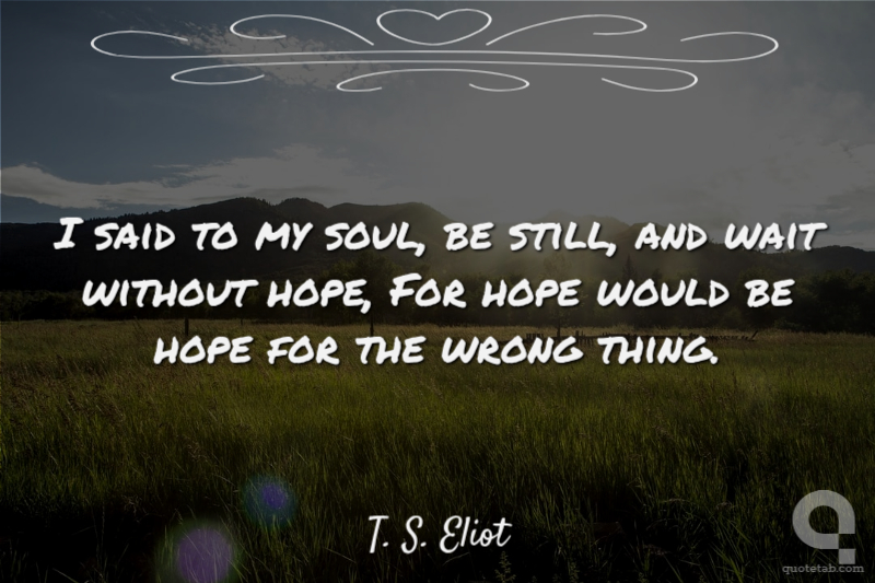 I said to my soul, be still, and wait without hope, For hope would be hope for the wrong thing.