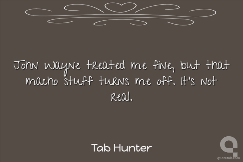 John Wayne treated me fine, but that macho stuff turns me off. It's not real.