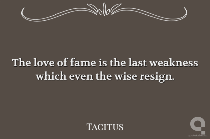 The love of fame is the last weakness which even the wise resign.