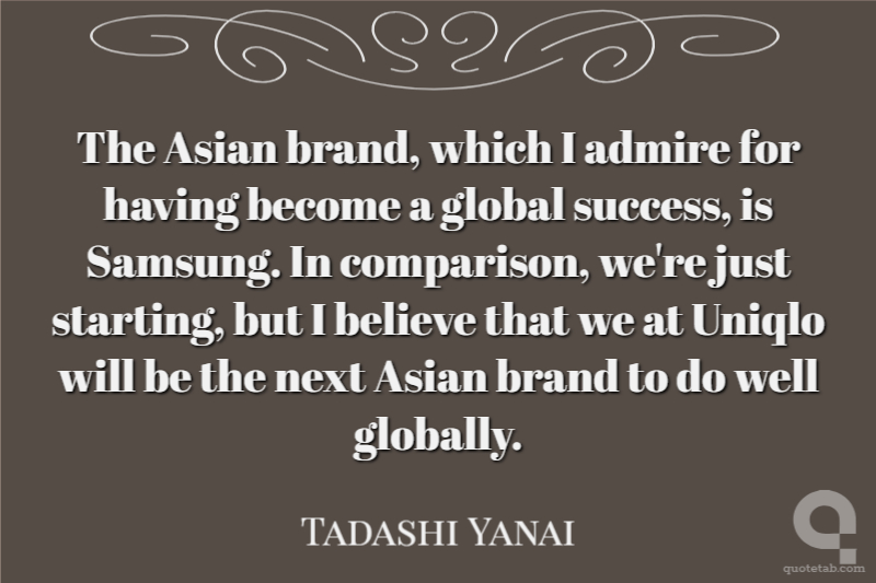 The Asian brand, which I admire for having become a global success, is Samsung. In comparison, we're just starting, but I believe that we at Uniqlo will be the next Asian brand to do well globally.