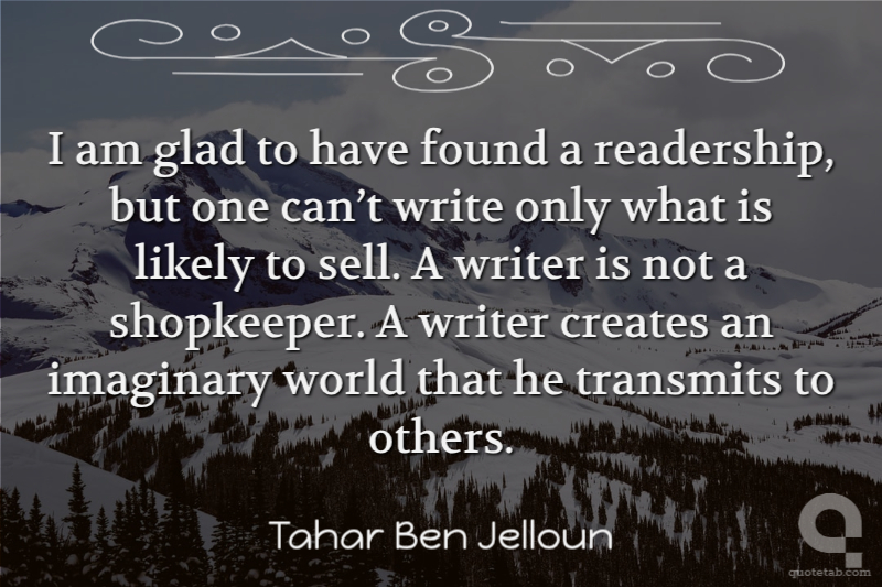 I am glad to have found a readership, but one can’t write only what is likely to sell. A writer is not a shopkeeper. A writer creates an imaginary world that he transmits to others.