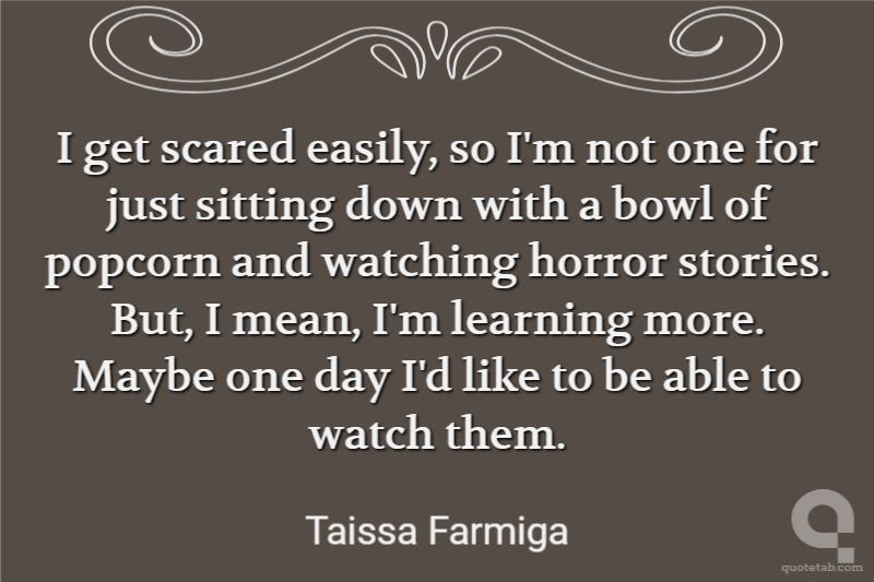 I get scared easily, so I'm not one for just sitting down with a bowl of popcorn and watching horror stories. But, I mean, I'm learning more. Maybe one day I'd like to be able to watch them.