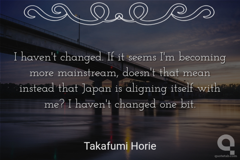I haven't changed. If it seems I'm becoming more mainstream, doesn't that mean instead that Japan is aligning itself with me? I haven't changed one bit.
