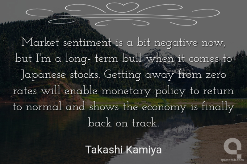 Market sentiment is a bit negative now, but I'm a long- term bull when it comes to Japanese stocks. Getting away from zero rates will enable monetary policy to return to normal and shows the economy is finally back on track.