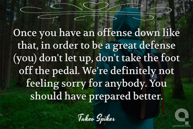 Once you have an offense down like that, in order to be a great defense (you) don't let up, don't take the foot off the pedal. We're definitely not feeling sorry for anybody. You should have prepared better.