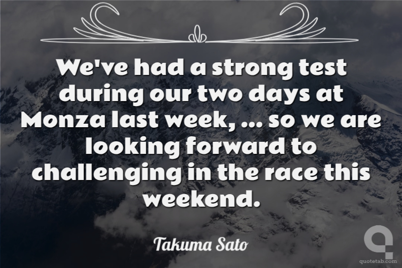 We've had a strong test during our two days at Monza last week, ... so we are looking forward to challenging in the race this weekend.