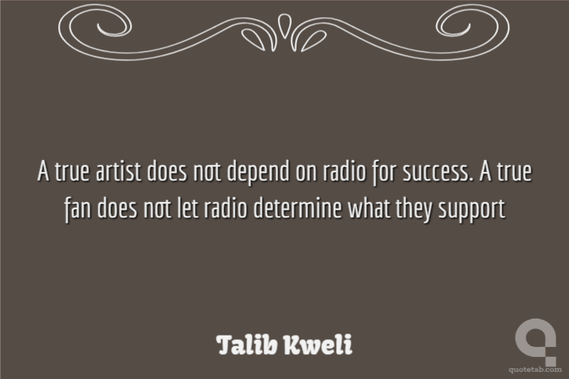 A true artist does not depend on radio for success. A true fan does not let radio determine what they support