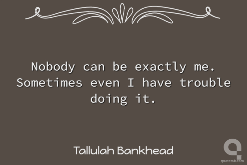 Nobody can be exactly me. Sometimes even I have trouble doing it.
