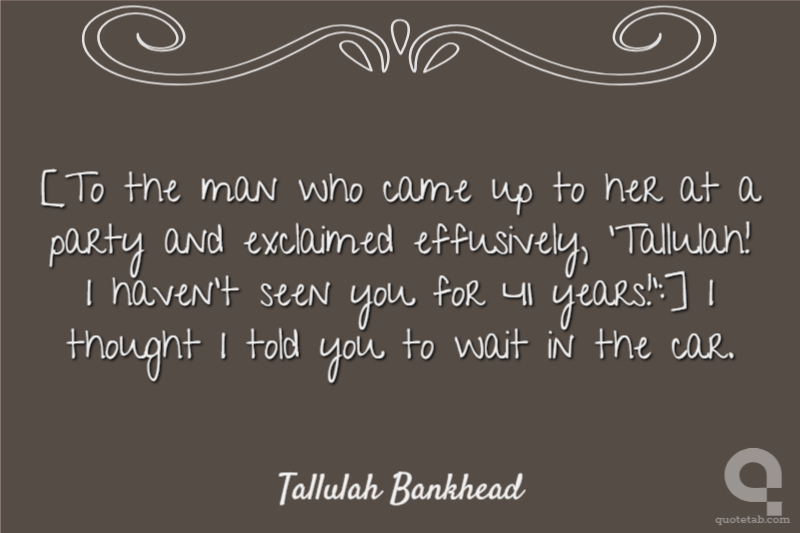[To the man who came up to her at a party and exclaimed effusively, 'Tallulah! I haven't seen you for 41 years!':] I thought I told you to wait in the car.