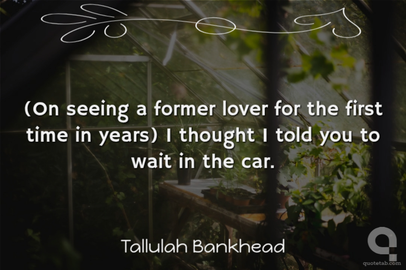 [To the man who came up to her at a party and exclaimed effusively, 'Tallulah! I haven't seen you for 41 years!':] I thought I told you to wait in the car.