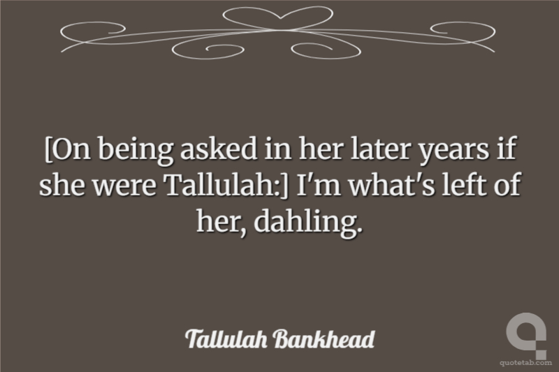 [On being asked in her later years if she were Tallulah:] I'm what's left of her, dahling.