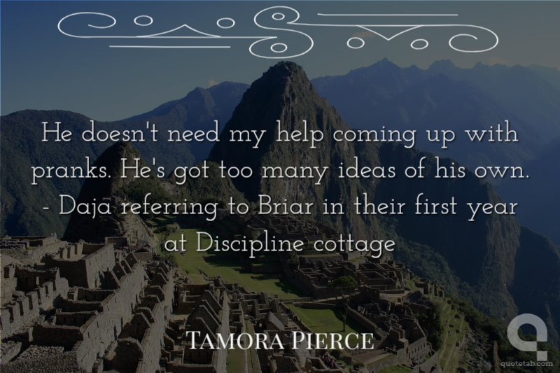 He doesn't need my help coming up with pranks. He's got too many ideas of his own. - Daja referring to Briar in their first year at Discipline cottage
