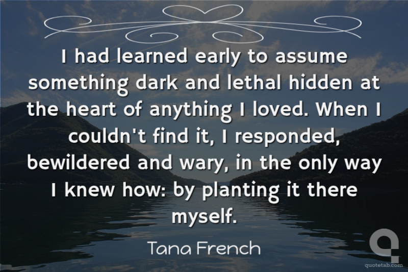 I had learned early to assume something dark and lethal hidden at the heart of anything I loved. When I couldn't find it, I responded, bewildered and wary, in the only way I knew how: by planting it there myself.