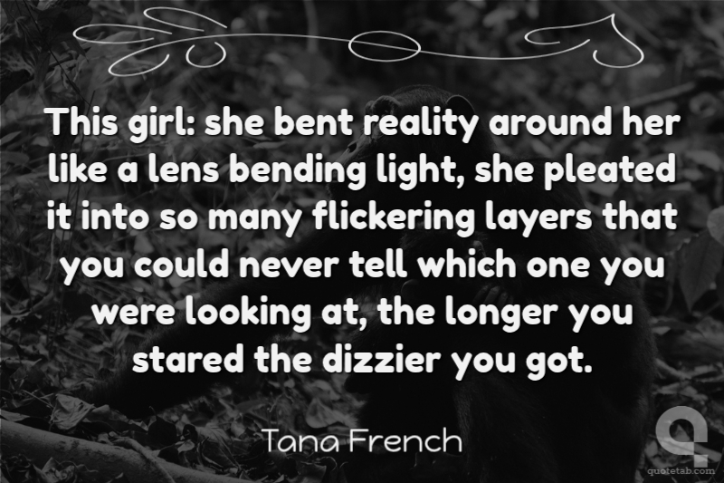This girl: she bent reality around her like a lens bending light, she pleated it into so many flickering layers that you could never tell which one you were looking at, the longer you stared the dizzier you got.