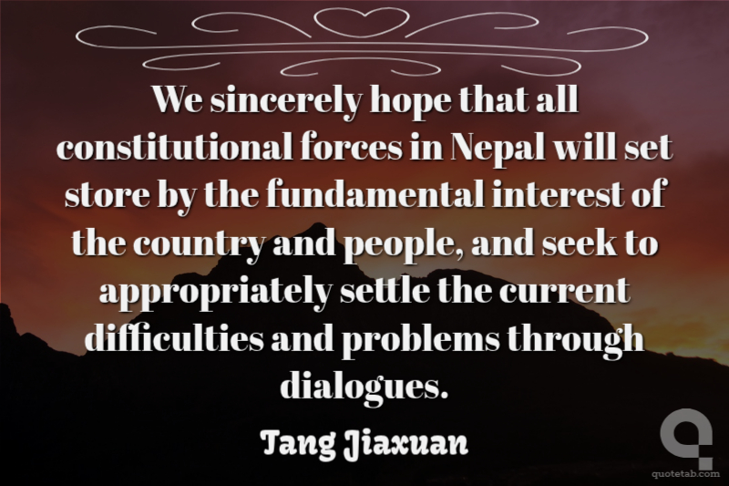 We sincerely hope that all constitutional forces in Nepal will set store by the fundamental interest of the country and people, and seek to appropriately settle the current difficulties and problems through dialogues.