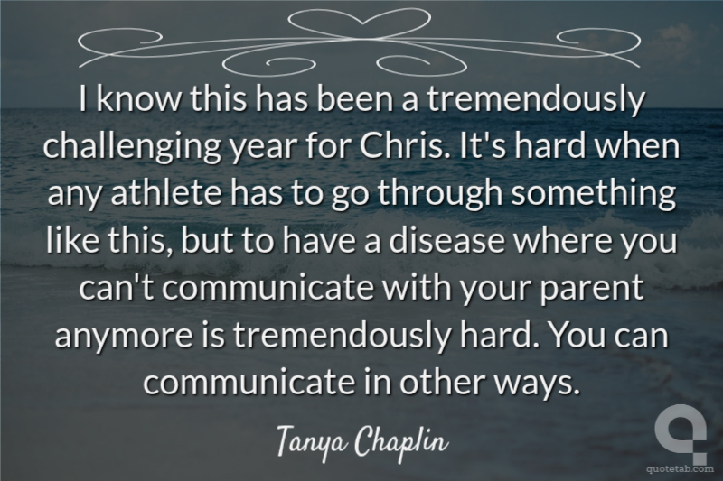 I know this has been a tremendously challenging year for Chris. It's hard when any athlete has to go through something like this, but to have a disease where you can't communicate with your parent anymore is tremendously hard. You can communicate in other ways.