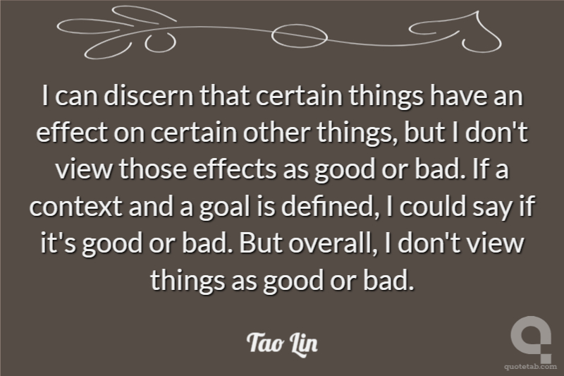 I can discern that certain things have an effect on certain other things, but I don't view those effects as good or bad. If a context and a goal is defined, I could say if it's good or bad. But overall, I don't view things as good or bad.