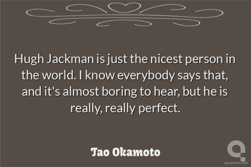 Hugh Jackman is just the nicest person in the world. I know everybody says that, and it's almost boring to hear, but he is really, really perfect.