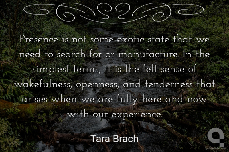 Presence is not some exotic state that we need to search for or manufacture. In the simplest terms, it is the felt sense of wakefulness, openness, and tenderness that arises when we are fully here and now with our experience.