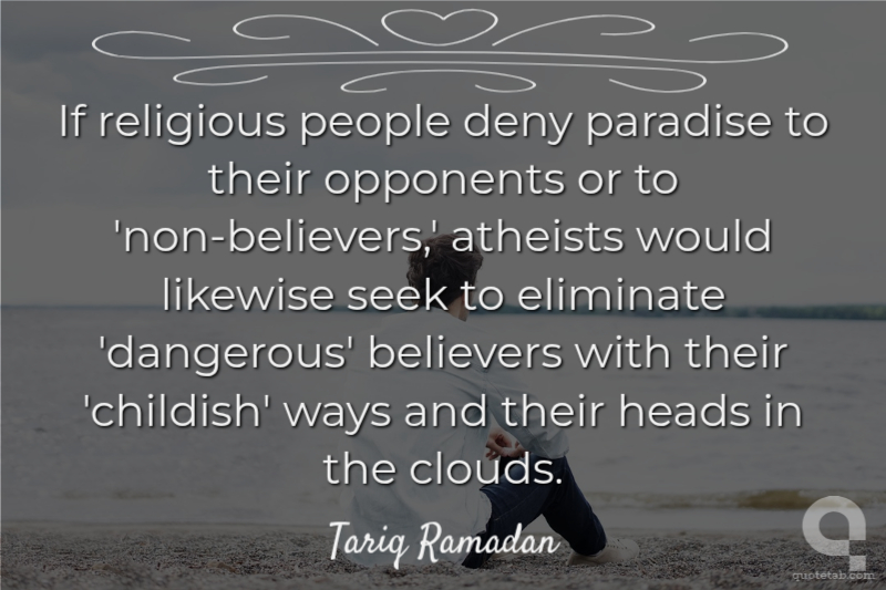 If religious people deny paradise to their opponents or to 'non-believers,' atheists would likewise seek to eliminate 'dangerous' believers with their 'childish' ways and their heads in the clouds.