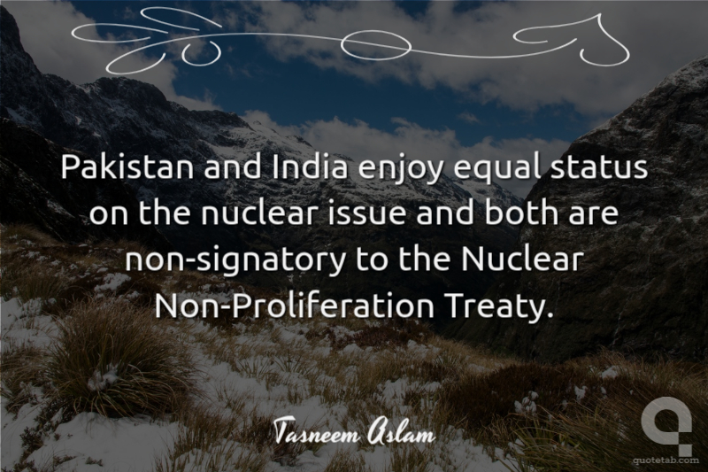 Pakistan and India enjoy equal status on the nuclear issue and both are non-signatory to the Nuclear Non-Proliferation Treaty.