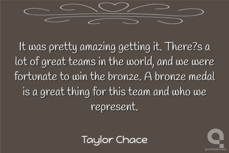It was pretty amazing getting it. There?s a lot of great teams in the world, and we were fortunate to win the bronze. A bronze medal is a great thing for this team and who we represent.