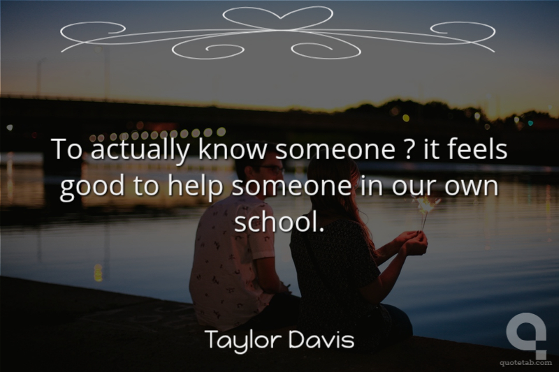 To actually know someone ? it feels good to help someone in our own school.