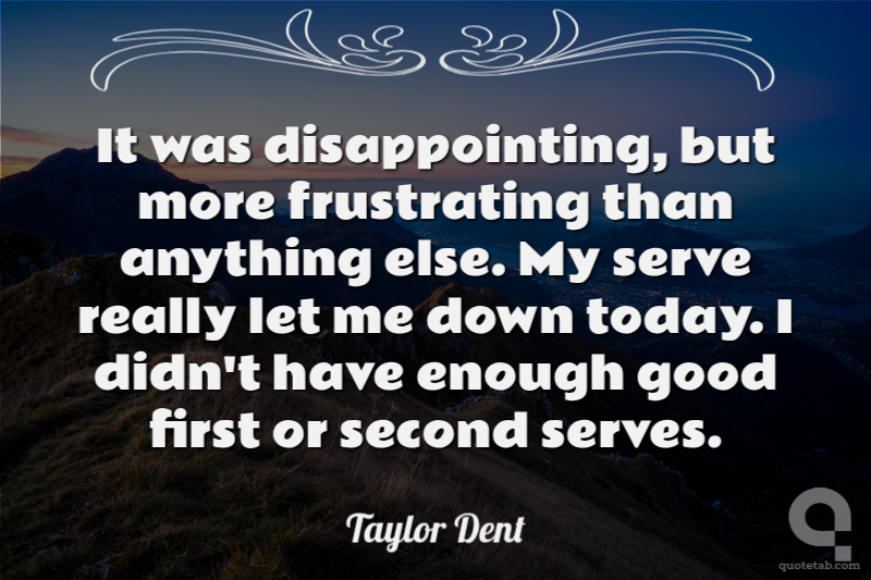 It was disappointing, but more frustrating than anything else. My serve really let me down today. I didn't have enough good first or second serves.