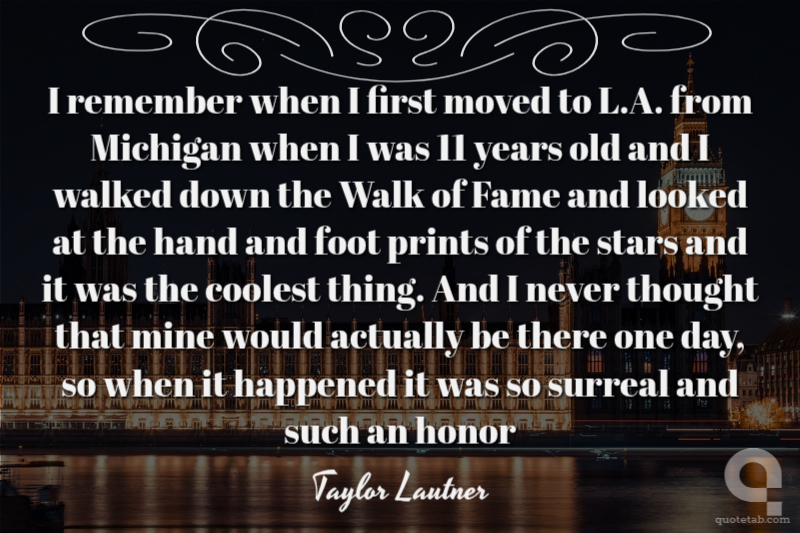 I remember when I first moved to L.A. from Michigan when I was 11 years old and I walked down the Walk of Fame and looked at the hand and foot prints of the stars and it was the coolest thing. And I never thought that mine would actually be there one day, so when it happened it was so surreal and such an honor