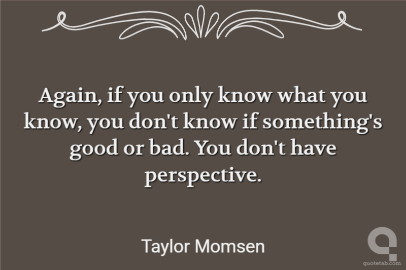 Again, if you only know what you know, you don't know if something's good or bad. You don't have perspective.
