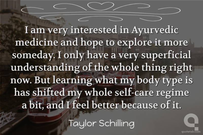 I am very interested in Ayurvedic medicine and hope to explore it more someday. I only have a very superficial understanding of the whole thing right now. But learning what my body type is has shifted my whole self-care regime a bit, and I feel better because of it.