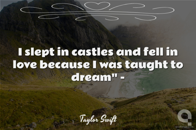 I slept in castles and fell in love because I was taught to dream" -