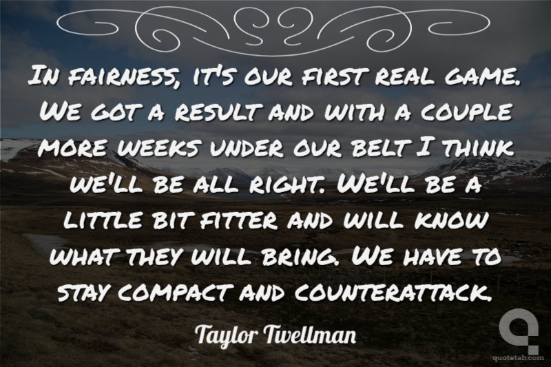 In fairness, it's our first real game. We got a result and with a couple more weeks under our belt I think we'll be all right. We'll be a little bit fitter and will know what they will bring. We have to stay compact and counterattack.
