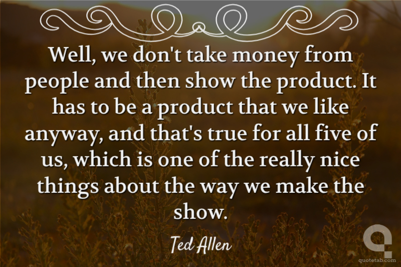 Well, we don't take money from people and then show the product. It has to be a product that we like anyway, and that's true for all five of us, which is one of the really nice things about the way we make the show.
