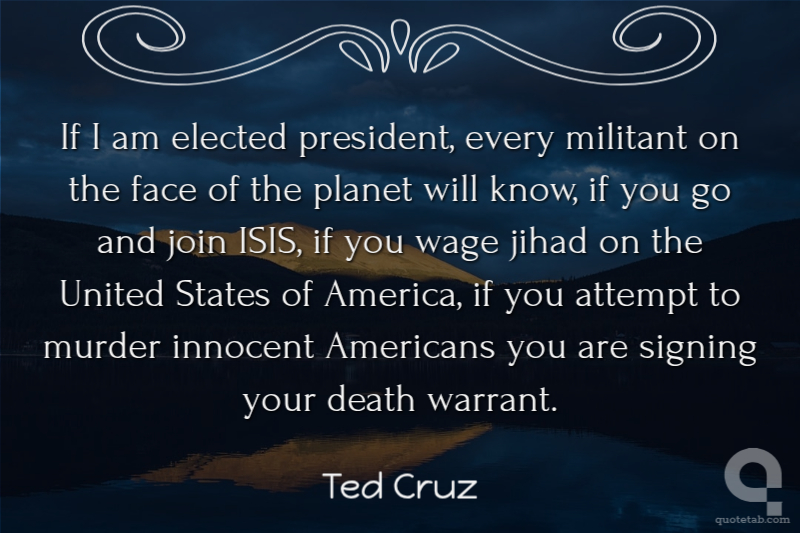 If I am elected president, every militant on the face of the planet will know, if you go and join ISIS, if you wage jihad on the United States of America, if you attempt to murder innocent Americans you are signing your death warrant.