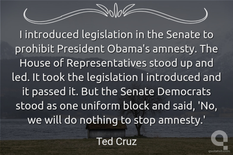 I introduced legislation in the Senate to prohibit President Obama's amnesty. The House of Representatives stood up and led. It took the legislation I introduced and it passed it. But the Senate Democrats stood as one uniform block and said, 'No, we will do nothing to stop amnesty.'