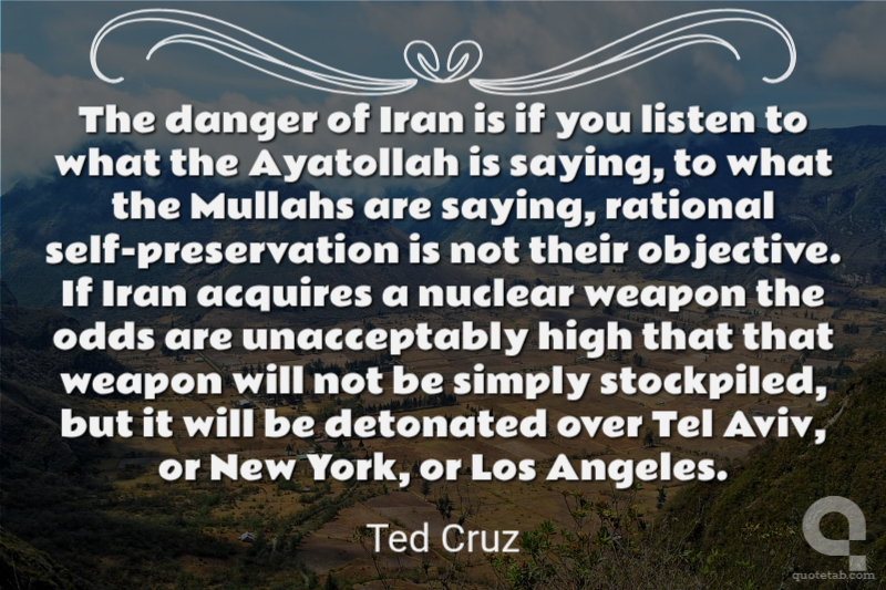 The danger of Iran is if you listen to what the Ayatollah is saying, to what the Mullahs are saying, rational self-preservation is not their objective. If Iran acquires a nuclear weapon the odds are unacceptably high that that weapon will not be simply stockpiled, but it will be detonated over Tel Aviv, or New York, or Los Angeles.