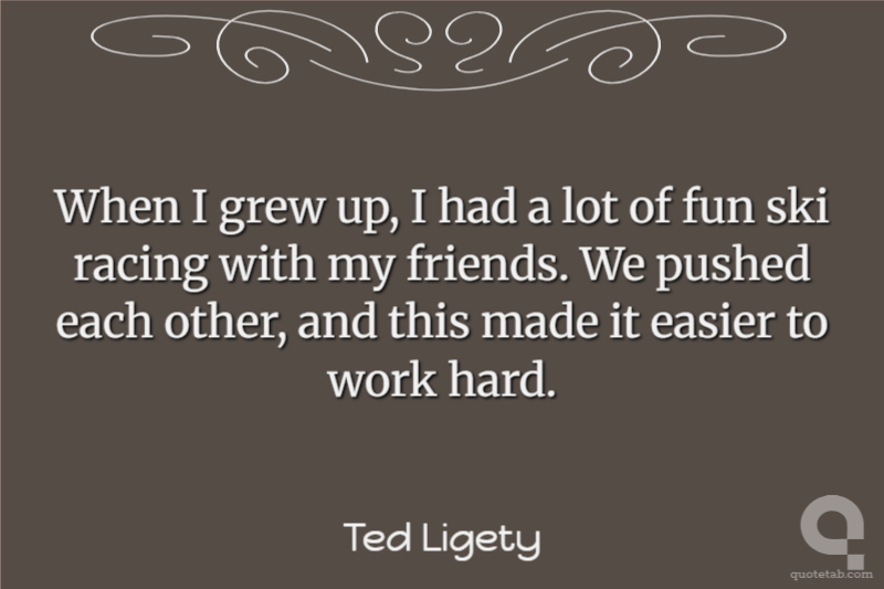 When I grew up, I had a lot of fun ski racing with my friends. We pushed each other, and this made it easier to work hard.